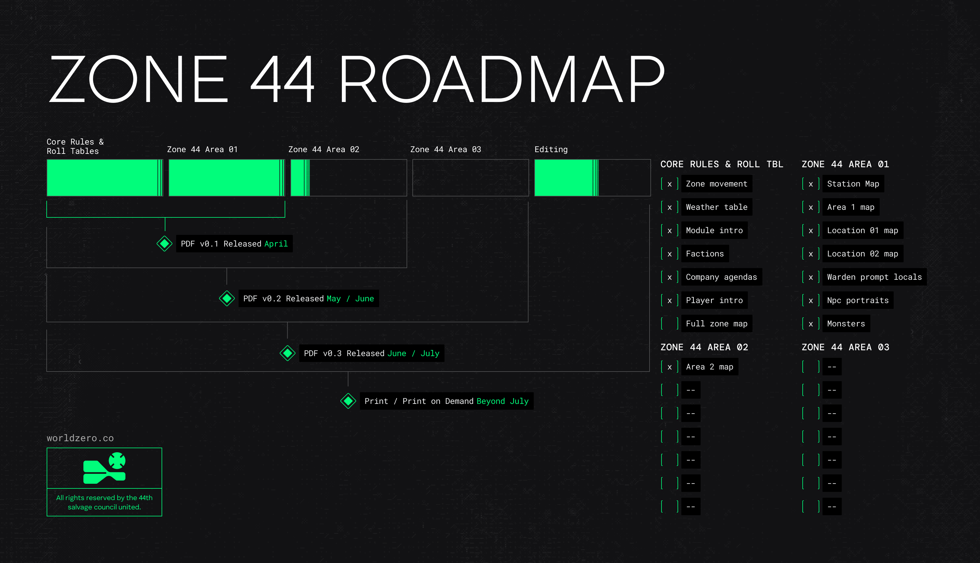 Run Zone 44 as a full campaign, pull individual adventures for a one-shots, or drop the whole zone into your existing game.